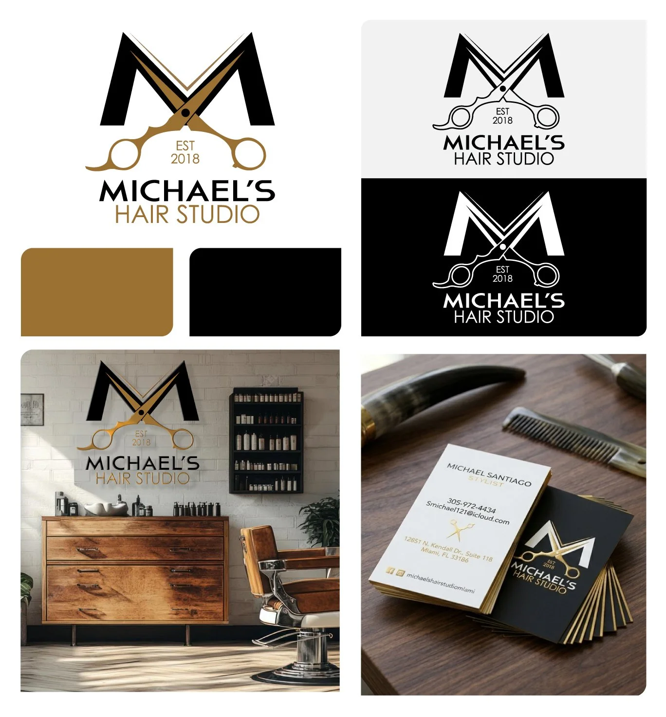 The Design Solution: The visual identity centers on a sophisticated monogram that seamlessly integrates professional shears into the letterform, creating a mark that is both recognizable and refined. To match the premium feel of the physical studio, the project extended into high-end brand touchpoints, including elegant business cards finished with gold foil and a custom backlit wall sign that anchors the interior design. The result is a cohesive brand that feels established yet fresh, providing Michael with a professional presence that matches the caliber of his work.