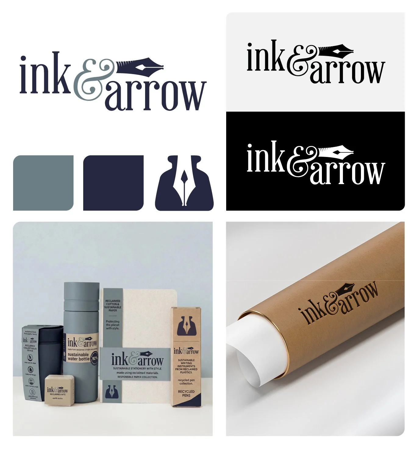 About the Project: Ink & Arrow is an emerging stationery brand built on the intersection of fine craftsmanship and environmental stewardship. The challenge was to create a visual language that appealed to the "conscious creator"—someone who values high-end design as much as they value the planet. The goal was to position the brand as a sophisticated yet responsible alternative in the boutique stationery market.