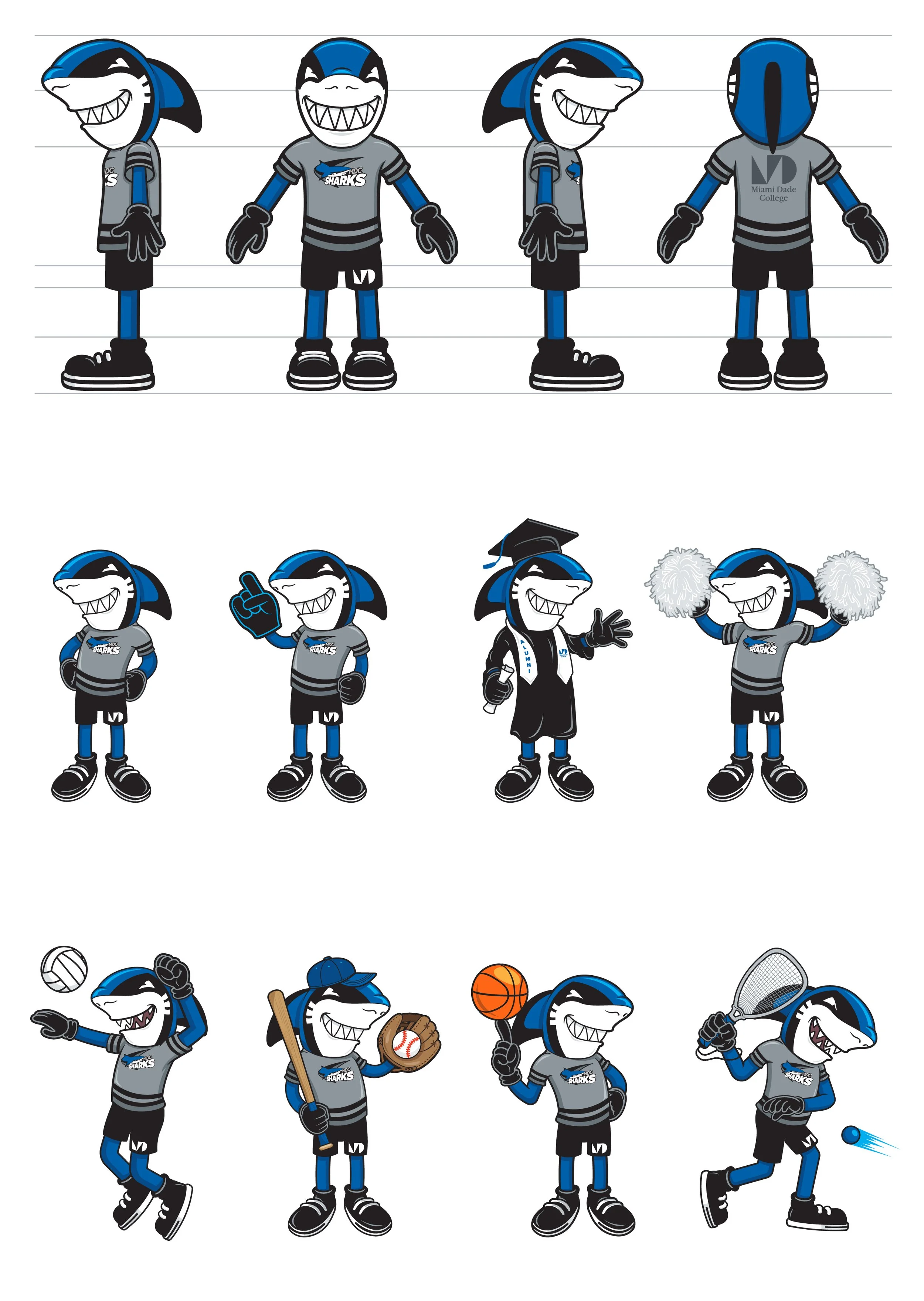 About the Project: Miami Dade College needed to revitalize their cartoon mascot, Finn, to better serve a diverse, multi-campus population. The previous iteration lacked the flexibility needed for the wide array of college departments, from athletics to academic honors. The goal was to create a "friendlier" Finn—a character that could act as a brand ambassador for everything from student orientation to specialized sports programs.