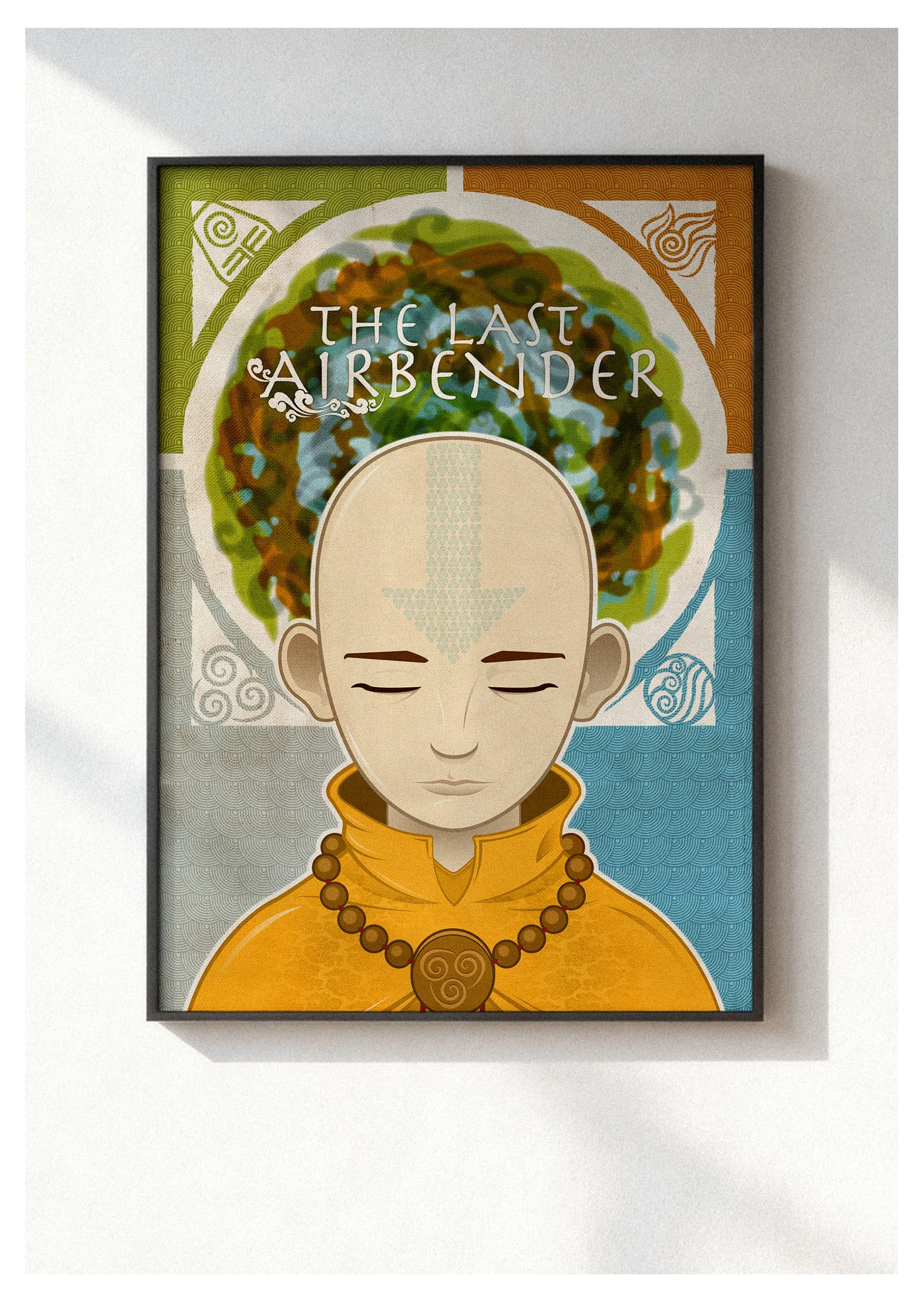 The Design Solution: The illustration focuses on the spiritual core of the protagonist, capturing Aang in a moment of meditative balance. I utilized a layered, symmetrical composition, framing the character with the four elemental symbols set against rich, traditional-inspired patterns. By incorporating fine details—such as the intricate textures within the iconic arrow tattoo and the hand-painted feel of the elemental halo—the design moves away from flat animation and toward a more tactile, collectible art style. The resulting print serves as a peaceful yet powerful tribute to the series' legacy of mindfulness and elemental harmony.